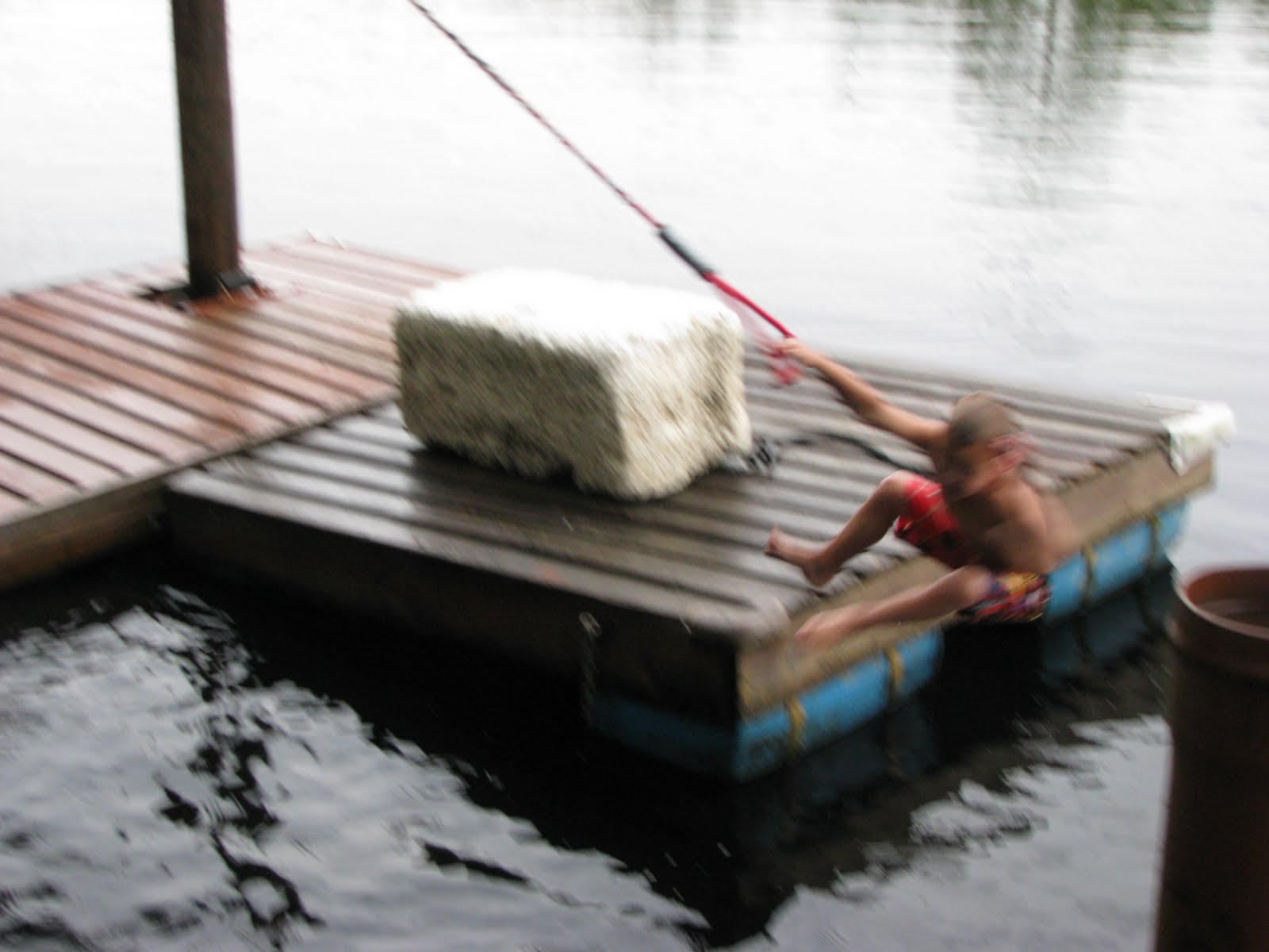 Sorry for the blurry picture--I had my camera on the wrong setting, but you CAN tell it's one of my monkeys swinging into the water!